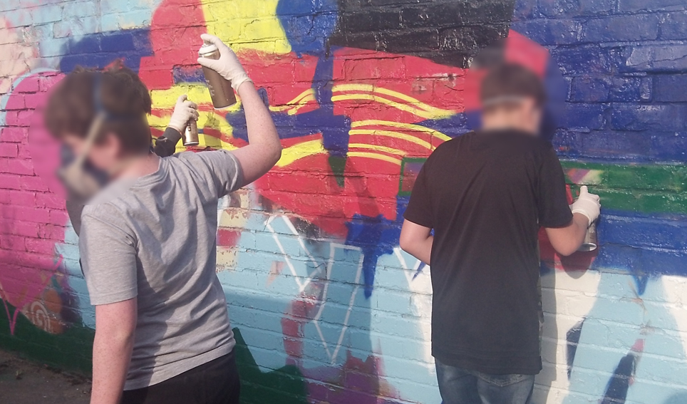 The summer 2017 project presented an opportunity to update the murals at the rear of the Community Learning Centre. Funding from Sale Community Panel and the Trafford Youth Trust helped to pay for materials, staff time and an artist to work with a group of young people.
