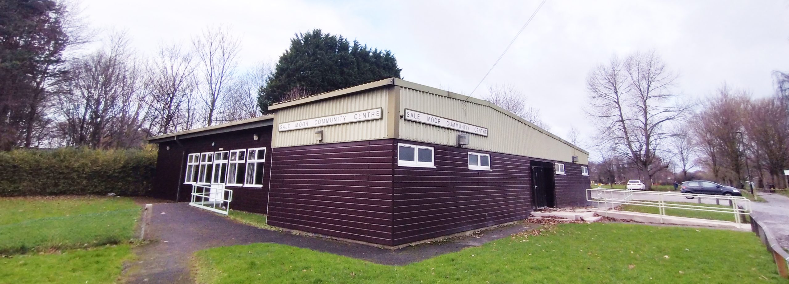 The Sale Moor Community Centre is on Norris Road at the entrance to Moor Nook Park and opposite Sale High School. The centre has two halls, the Main & Lesser Hall with a stage in the Main Hall. A small kitchen space is situated in the centre with hathces that open into both halls. The kitchen has kettles and space for small appliances. The centre is accesible to chair users with ramps outside and a flat floor throughout (except for the stage). The Main Hall seats 100 and the Lesser Hall seats 50 people comfortably.